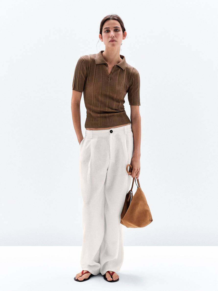 Īpaši aktuāli ir kļuvuši pieguloši polo stila džemperi no plāna, elastīga adījuma un ar kontrastējošu apkaklīti. Tie izskatās eleganti un vienlaikus ir ērti – lieliski piemēroti vēsākām vasaras dienām. Ja izvēlies džemperi ar svītrām vai izšuvumu, tas automātiski kļūst par tēla akcentu – pietiek to papildināt ar vienkāršām biksēm vai svārkiem, lai izskatītos gaumīgi.