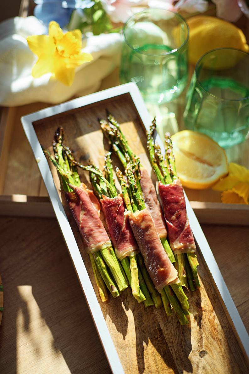 Sparģeļu uzkoda ar prošuto diviem gardēžiem